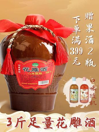 绍兴坛装黄酒八年陈加饭花雕酒3斤糯米老酒女儿妆红整箱阿胶甜酒