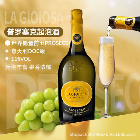 意大利进口DOC级Prosecco普罗塞克起泡酒半干白葡萄气泡酒香槟