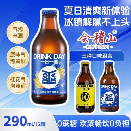 会稽山一日一熏沁气泡米酒290ml瓶装6度微醺气泡黄酒桂花黄酒原箱